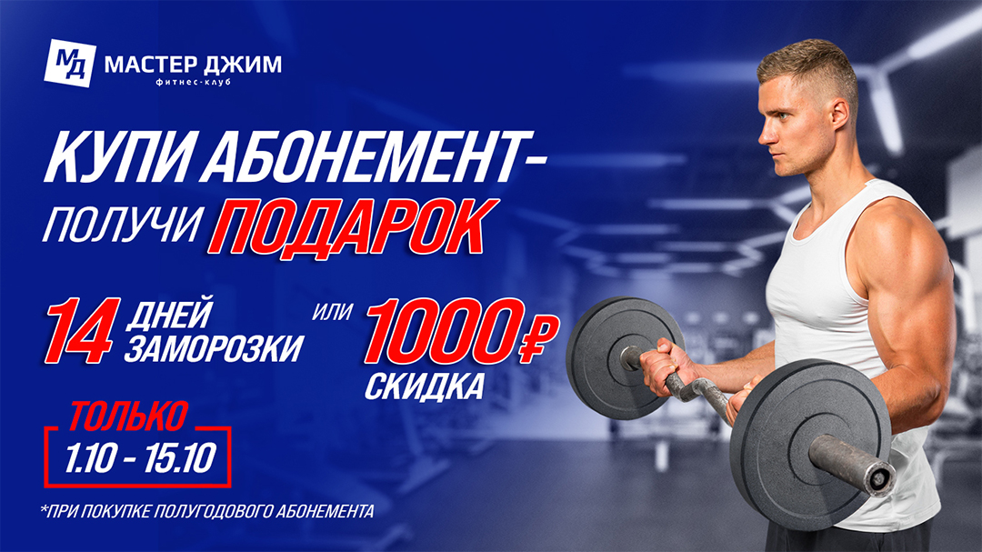 ВЫГОДНЫЙ фитнес в «Мастер Джим» ВСЕГО от 3250₽ в месяц!